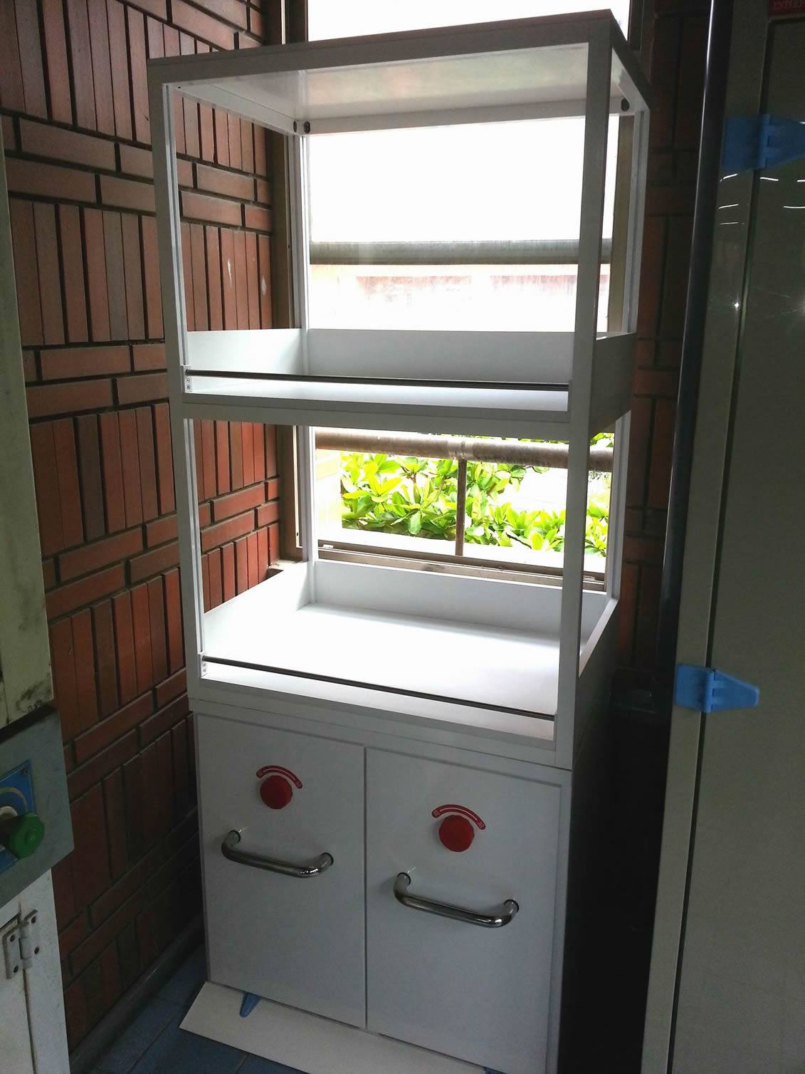 圖一為耐酸鹼廢液櫃+層板架