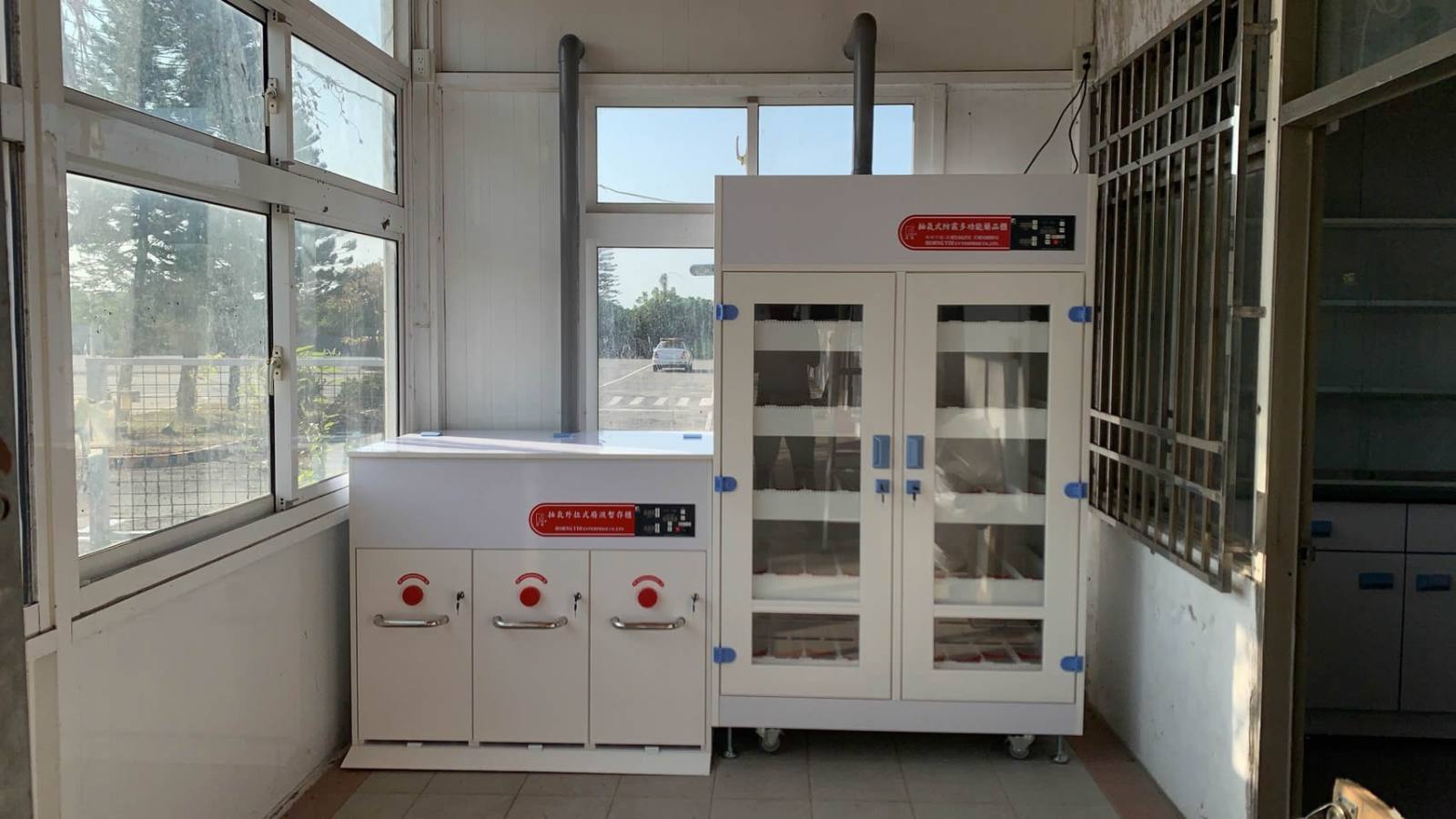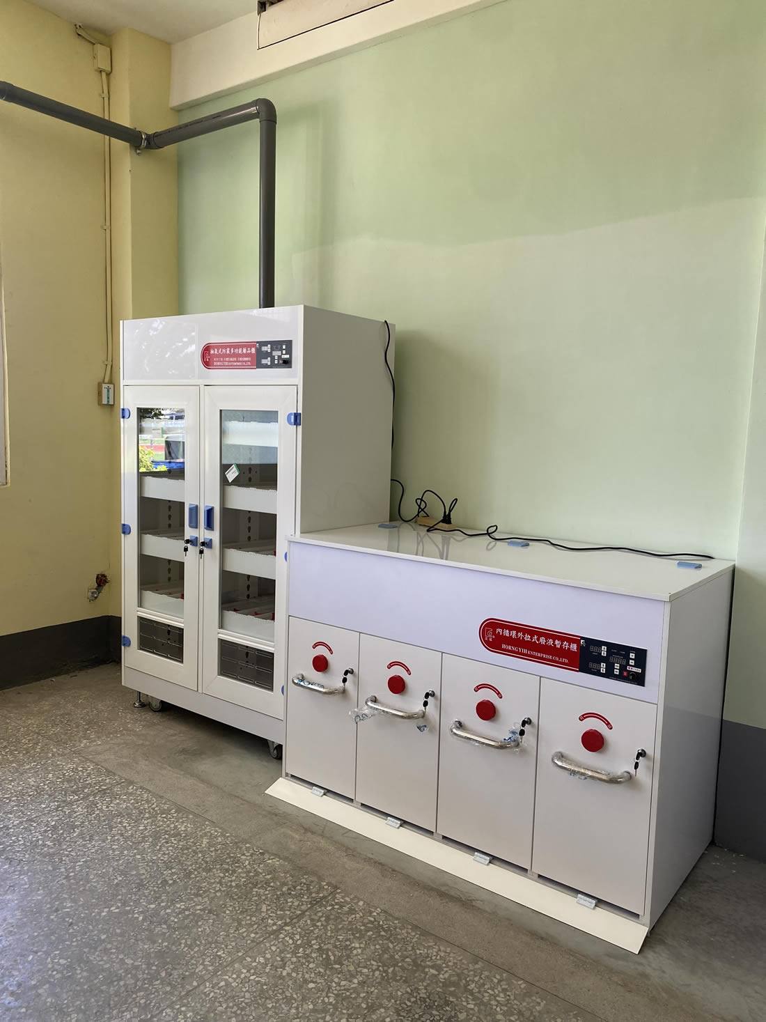 *內部:PVC廢液暫存推車,每台可容納容量25L廢液兩桶